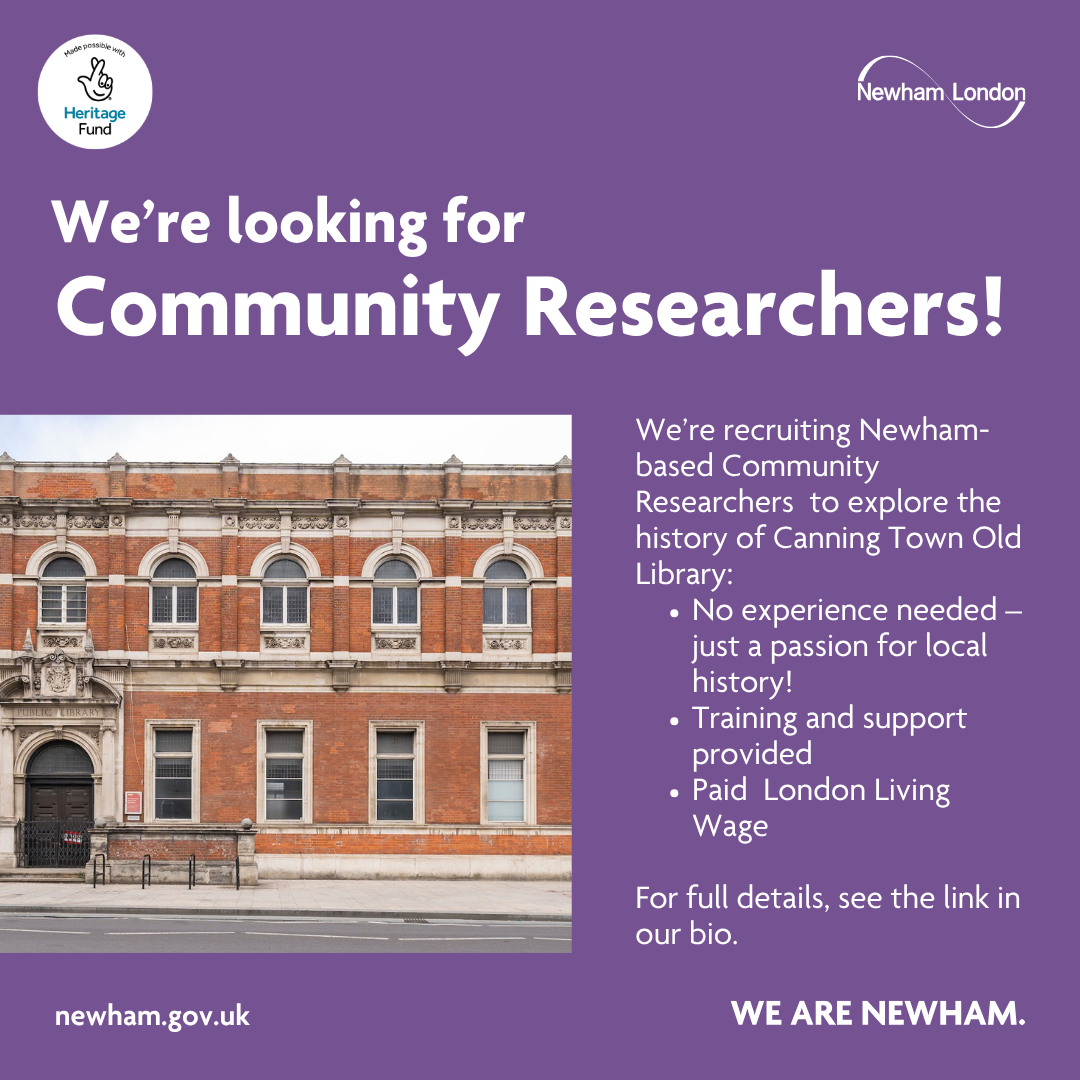 We're recruiting 8 local residents to become Community Researchers and help uncover the history of Canning Town Old Library as part of Newham Heritage Month 2025.