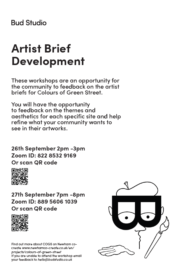 Online workshops will provide an opportunity for the community to build on the emerging artist brief created in workshop 2 and finalise the artist briefs for each artwork location/wall. In these workshops the attendees will discuss, refine and develop the artist briefs for each Colour of Green Street site. Please see the zoom meeting invites for these meeting below