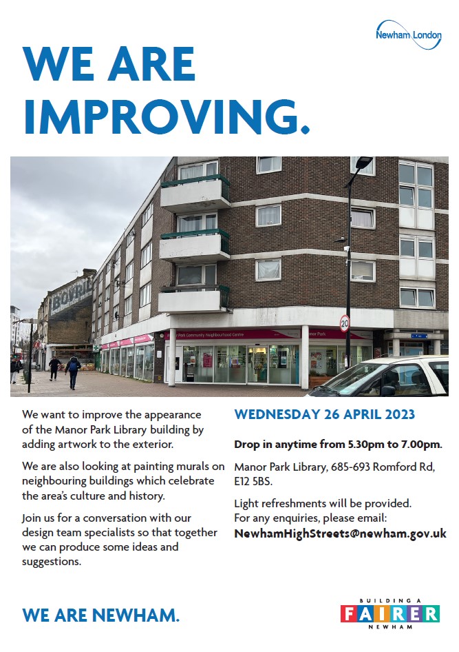 - Part 2 involves the installation of one or more murals in the area surrounding 1 Station Road to highlight Manor Park’s local history and celebrate its identity.