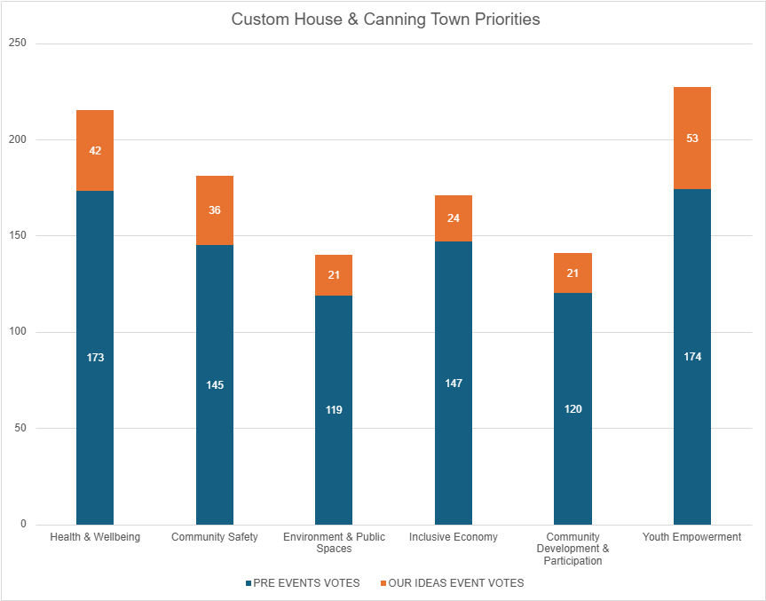 In total 370 residents voted for priorities in Custom House & Canning Town, which are: