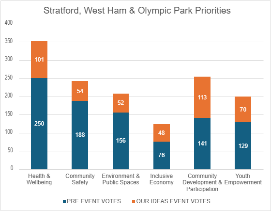 In total 480 residents voted for priorities in Stratford, West Ham & Olympic Park, which are: