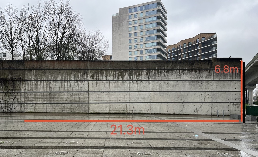 It follows a series of major improvements in the area (called the Royal Docks Corridor project), building and cleaning to make the neighbourhood safer, greener and more accessible. This has included a full overhaul of the square outside Pontoon Dock station, where we want to install a vibrant, welcoming new artwork across 1 - 2 of the walls.